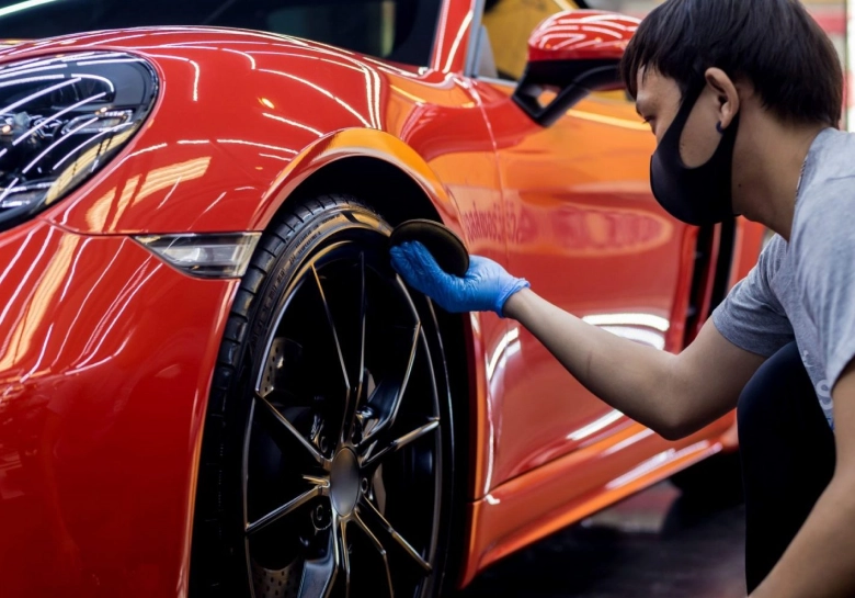 Tire Shiner: A premium tire shine product is applied to the tires, giving them a glossy, black finish. This not only enhances their appearance but also protects them from cracking and UV damage.