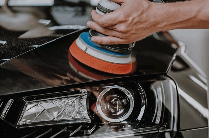• Polishing: Polishing restores the paint’s clarity and removes minor imperfections using specialized compounds and machines to eliminate swirl marks, scratches, and oxidation, bringing back the car’s original luster.